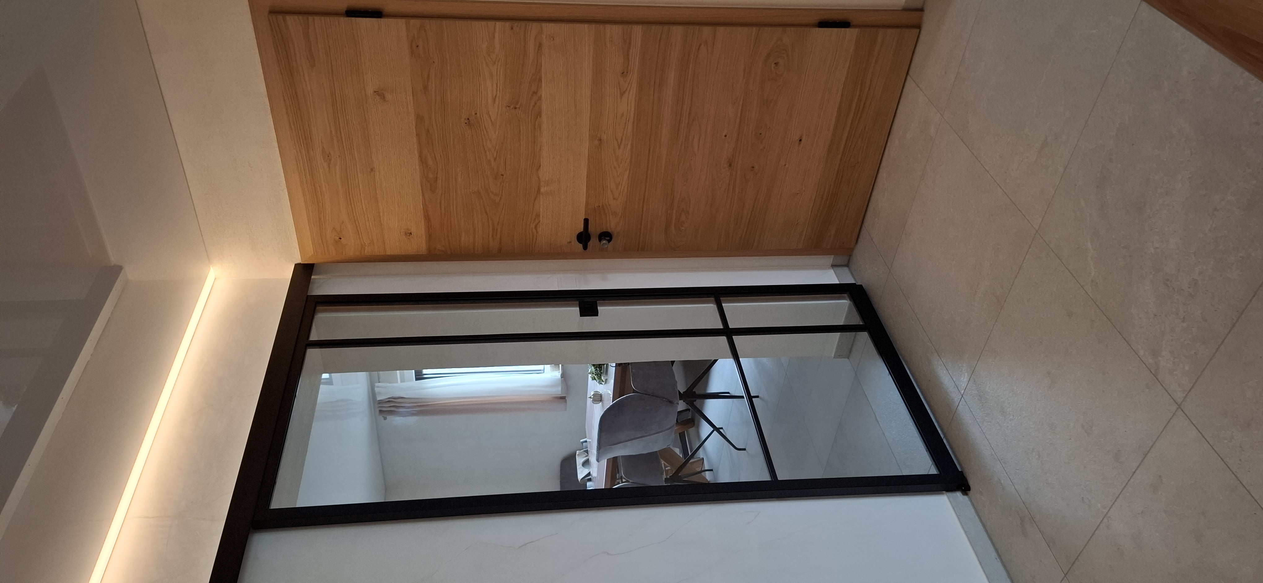 - Art: Wir bieten Lösungen als Drehtür, platzsparende Schiebetür oder als elegante Pivot-Tür an.