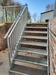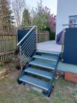 Außentreppen führen wir meist als Stahlwangentreppen mit individuellen Belägen aus. Das passende Geländer wird nach Ihren Wünschen maßangefertigt.